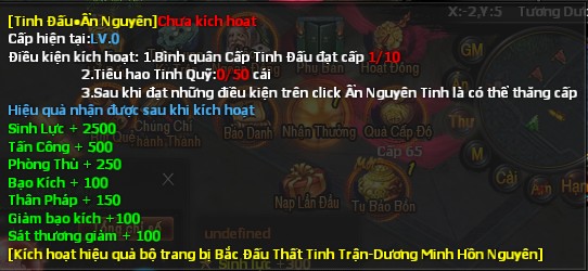 | Ẩn Nguyên | Tăng tất cả chỉ số của các Tinh Đấu | Cấp Tinh Đấu trung bình: 10 |