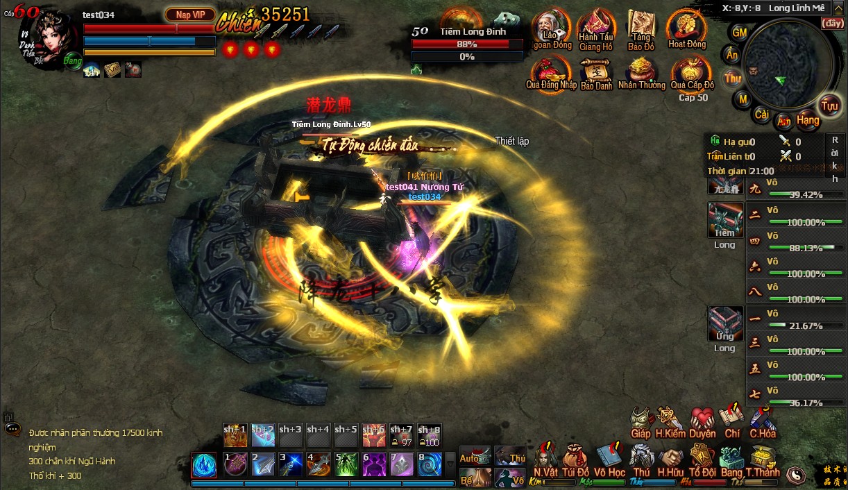 Map Long Đỉnh Chiến có Cửu Tôn Long Đỉnh, chiếm lĩnh số lượng Long Đỉnh càng nhiều thì phẩn thưởng định kỳ sẽ càng phong phú. Sau khi kết thúc Bang Hội nào chiếm được nhiều Long Đỉnh nhất sẽ nhận được BUFF tăng % kinh nghiệm đánh quái trong 3 ngày.