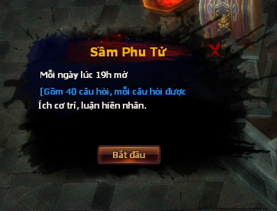 Chú ý: Trong khi trả lời câu hỏi, không thể tạm dừng, nếu tắt của sổ sự kiện thì sẽ không thể tiếp tục tham gia.